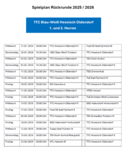 Gesamtspielplan 1. und 2. Mannschaft